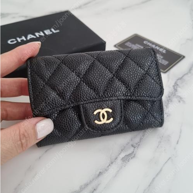 캐비어 금장 클래식 플랩 카드지갑
