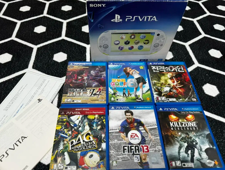 PSVITA 2세대 PCH-2005 생활기스 약간 있으나 전체적으로 깨끗함 본체, 충전기,L2R2 L3R3 핸드그립 트리거, 박스, 게임6개, 휴대용케이스, 알칩케이스 L2R2 L3R3 핸드그립 트리거도 구입해서 PS4리모트 이용하려고 했는데 생각보다 손이 안가서 판매합니다
