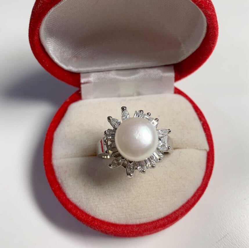 플래티넘 다이아 진짜 진주 반지 크기 18호